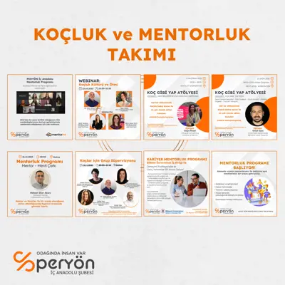 PERYÖN İç Anadolu bünyesinde gönüllü üyelerimizden oluşan "Koçluk ve Mentorluk Çevik Takımı"nın bu amaçla yürüttüğü çalışmalarda Yönetim Kurulu üyelerimiz; HAVELSAN Liderlik ve Kişisel Gelişim Takım Yöneticisi Betül Yardımcı ve FNSS Organizasyonel Gelişim Müdürü Dilanur Türer Çetin Takım Lideri olarak süreçlere yön vermektedirler.
