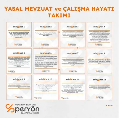 PERYÖN İç Anadolu bünyesinde gönüllü üyelerimizden oluşan "Yasal Mevzuat ve Çalışma Hayatı Çevik Takımı"nın bu amaçla yürüttüğü çalışmalarda Denetim Kurulu Başkanımız Enerjisa Çalışma İlişkileri Yöneticisi Çağrı Toksoy ve Yönetim Kurulu üyemiz GAMA Enerji İK Direktörü Ali İner Takım Lideri olarak süreçlere yön vermektedirler.