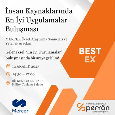 2023 yılında düzenlediğimiz İnsan Kaynakları Uzmanlık Programında yer alan eğitimcilerimiz ile bu yıl 2.sini düzenlediğimiz 12 Aralık'ta gerçekleşen Mercer işbirliği ile PERYÖN İç Anadolu BestEx "İnsan Kaynaklarında En İyi Uygulamalar"da yer alan Mercer eğitimcilerimizle birlikte bir araya geldik, gayretlerimize ortak oldukları için tüm üyelerimize ve kendilerine tekrar teşekkür ederiz.